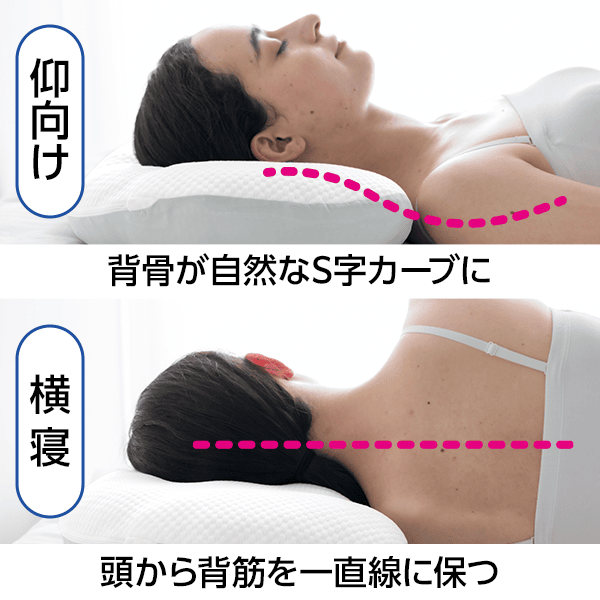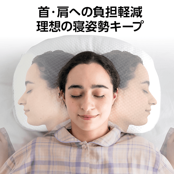 - サイドクッションで肩の負担を軽減し、横寝時に頭から背筋を一直線に保つ高さ設定