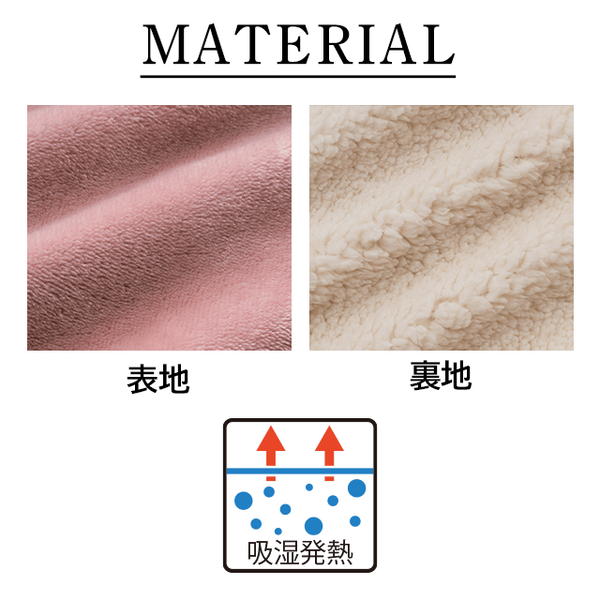 - とろみのあるなめらかな肌ざわりのショートフリース、アルミシート、裏側ボアの3層構造であたたかい
