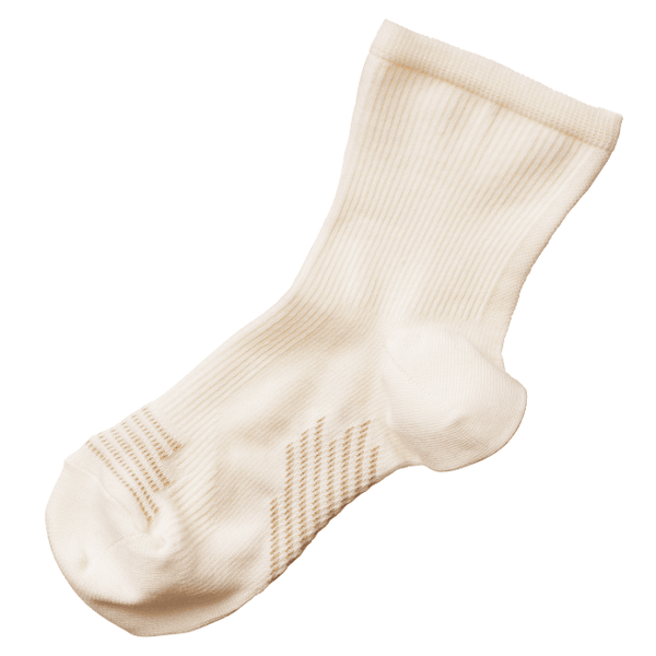 - つま先と足裏アーチ部分の編地変化で足先を引き上げるような意識はでました。ハイゲージ編みで薄手なので、普段の靴にあわせやすいです。