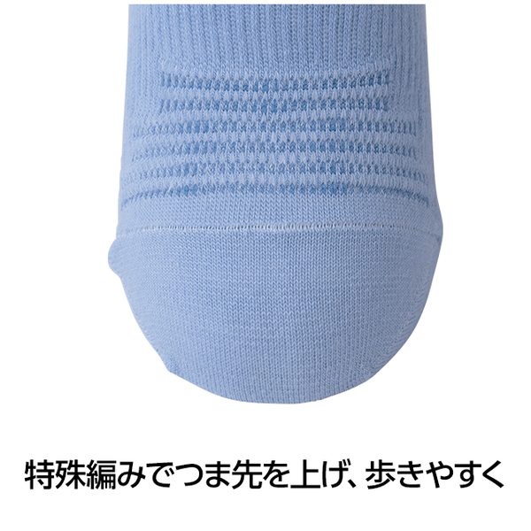 - 足先と甲の特殊編みでつま先を上げ、歩きやすい