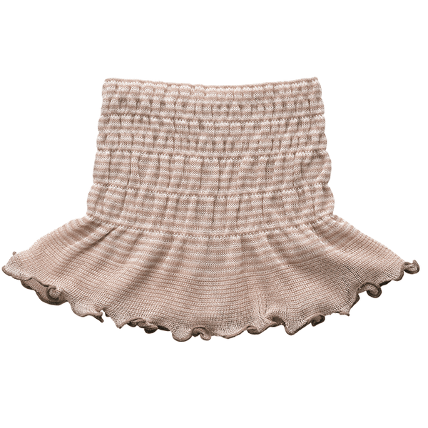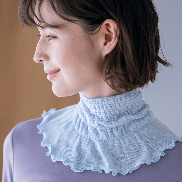 冷えや乾燥に、シルク混のニットでやさしくケア。シャーリングが首にフィットしてかぶりやすく冷えにくい。普段はもちろん、就寝中も首元を守ります。