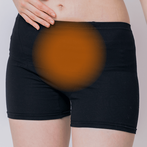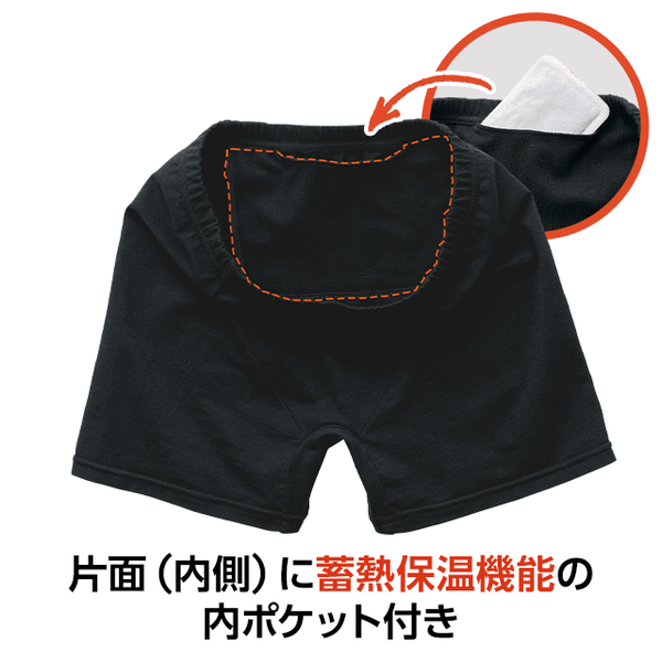 片面(内側)に蓄熱保温機能の内ポケット付きオーバーショーツ。前後どちらでもはけて、好きな部分をあたためられます。