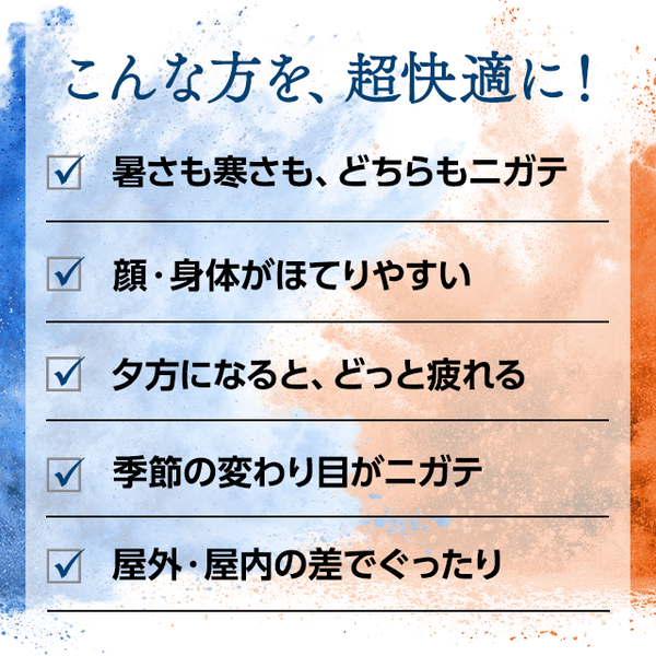 「寒ッ!」も「暑ッ!」も防ぎ365日これ1枚で超快適な温度調節タンクトップ。玄関でブルッ、屋内でムワッ…寒暖差は地味にストレス。調温疲れで、気づかないうちに夕方にはぐったりしていることも。NASA由来の素材を使ったインナーなら、保温でも冷感でもない温度調節を代わりにしてくれ、気温が読めない日にも頼れて毎日がぐんと快適に。1年中使えるので衣替えも不要で、季節をまたいでずっと気持ちよく過ごせます。