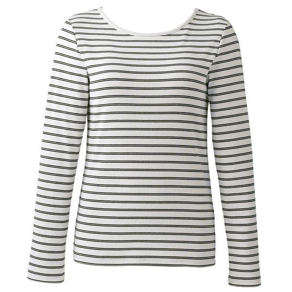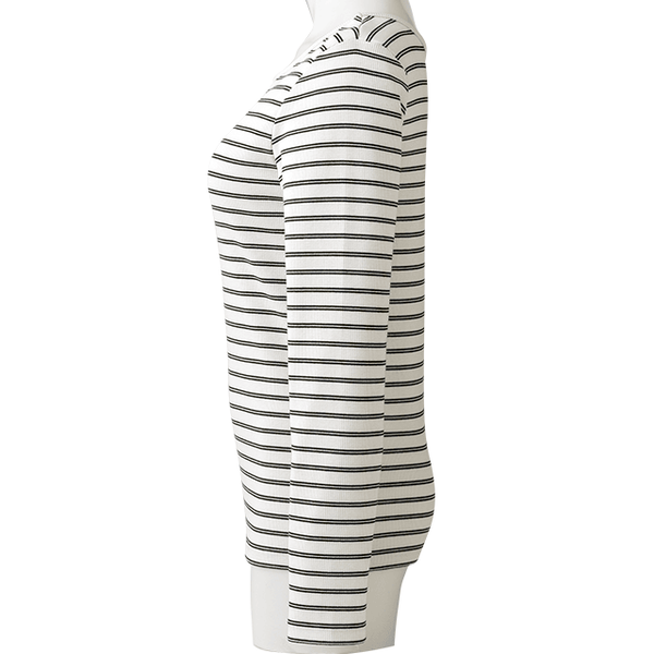 - 身体にほどよくフィットしてきれいに見せる綿混のストレッチリブ素材