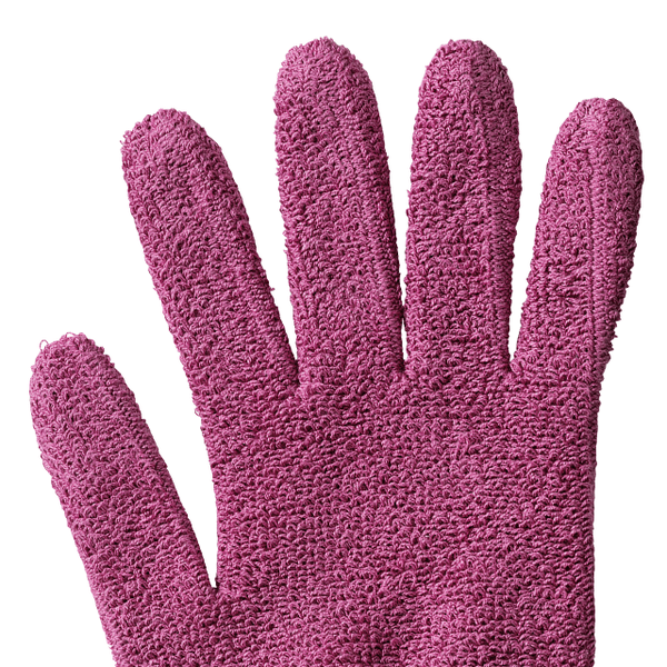 - 普段はフェイスタオルで水分を吸いながら髪の毛を乾かしていますが、ドライヤーの風でタオルが落ちてしまうのがプチストレスでした。この商品はグローブ型なので、手で撫でつけながら髪を乾かすことができて、使いやすいです。ループがシルク100%で髪がツヤっとなるのもうれしいポイントでした。