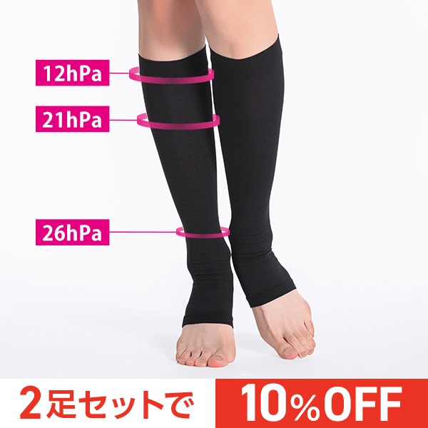 ムレにくく快適にむくみケアできる♪つま先オープンな着圧ソックス