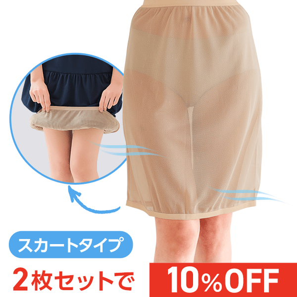 大人気のメッシュ素材ラクペチ・スカート用がお求めやすくなって再デビュー!ボトムスのベタつきやトイレの困った!を爽快メッシュでさらっと解決します。