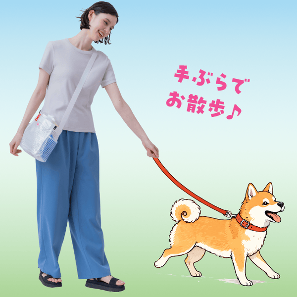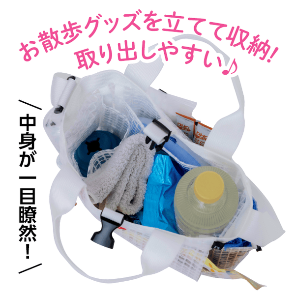 愛犬とのお散歩に必要な荷物を、立てたまま効率よく収納できるトートバッグ。お散歩に出るとき、マナー袋におやつ、ウェットティッシュにお水のボトルと、意外と荷物が増えてバッグの中がごちゃごちゃしがち。そんなお散歩グッズをすっきりまとめて持ち歩けるのが、このお散歩専用バッグです。ポケットが充実しているから必要なものがさっと取り出せて、毎日のお散歩がぐっとラクになりますよ。手持ちとショルダーの2WAY仕様で、抱っこ時も快適です。レッドのカラビナチャームはDHC限定カラーです。