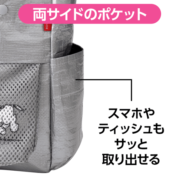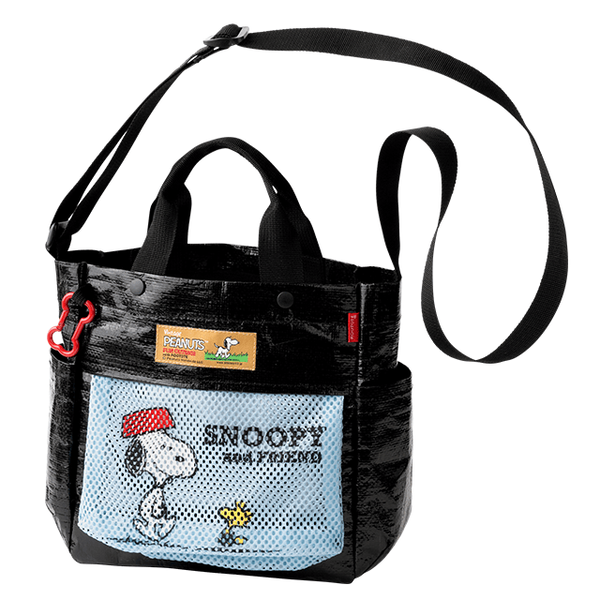 - 仕様/開閉:スナップボタン付き 前面:オープンポケット・PEANUTSネーム付き 背面:メッシュポケット・ルートートネーム付き 脇:オープンポケット×2 カラビナ付き(取り外し可) 中面:オープンポケット×2 ショルダー:長さ調節可・取り外し不可