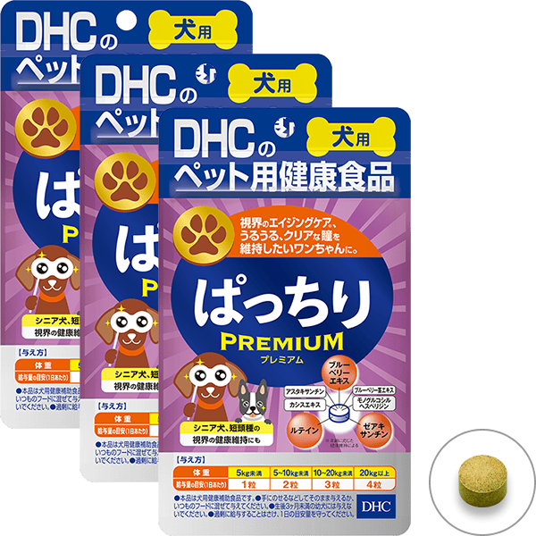 『犬用 国産 ぱっちり プレミアム』は、大人気の愛犬の瞳ケアサプリメント『犬用 国産 ぱっちり』に新成分をプラスして、プレミアムな処方となって新登場しました。