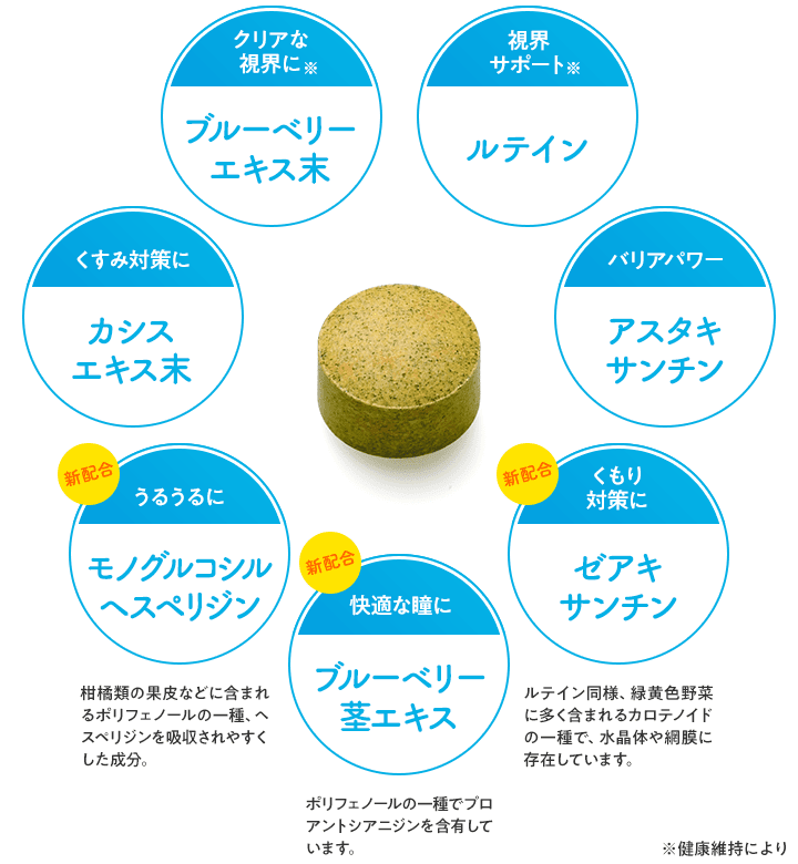 年齢を重ねた瞳に、植物・藻類由来の7成分で健康な視界をキープ!