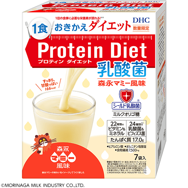 『DHCプロティンダイエット 乳酸菌 森永マミー風味』は、森永マミーとのコラボレーションで生まれた数量限定味。昔からなじみ深い森永マミーの甘酸っぱいフレーバーを活かして、飲みやすく、続けやすいドリンクが誕生しました!