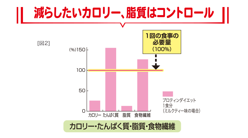 健康的なダイエットに欠かせないたんぱく質には、植物由来の大豆たんぱくと、動物由来の乳たんぱくをダブルで採用し、バランスよく配合しています。