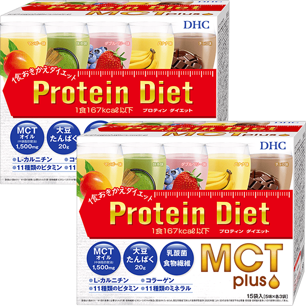 『DHCプロティンダイエット MCTプラス』は、健康や美容、ダイエットなど様々な分野で注目される中鎖脂肪酸100%の「MCTオイル」を配合した、ダイエットおきかえドリンクです。「MCTオイル」は、すぐにエネルギーに変わり、食後の満足感をサポートするため「ダイエットサポートオイル」ともいわれています。