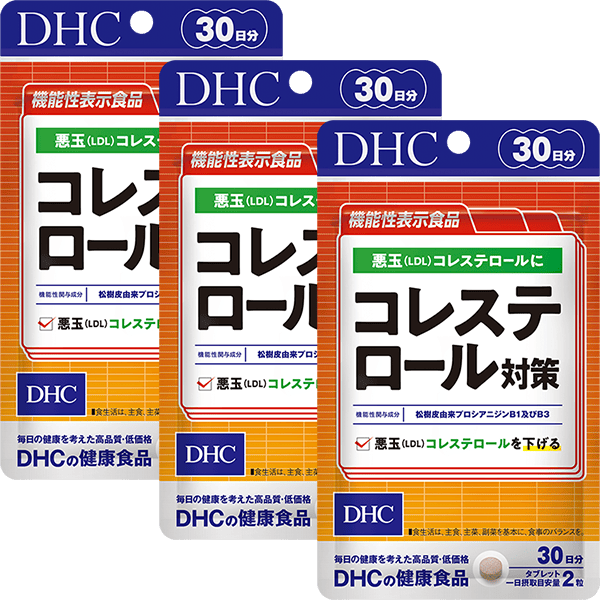 『コレステロール対策』は、悪玉(LDL)コレステロールを下げる機能が報告されている、松樹皮由来プロシアニジンB1及びB3を配合した機能性表示食品です。