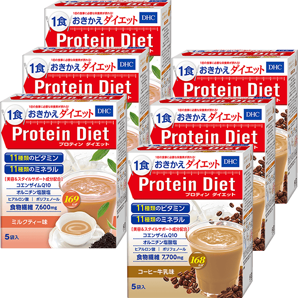 『DHCプロティンダイエット ミルクティー味』と、『DHCプロティンダイエット コーヒー牛乳味』を、お得なセットにしました。