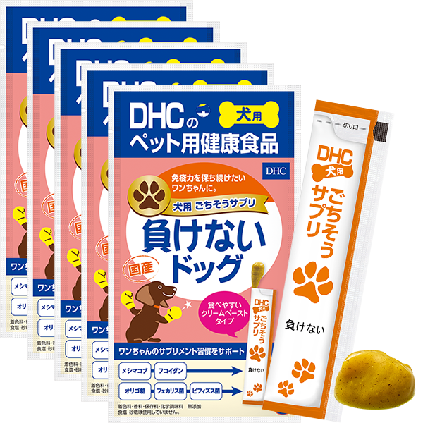 - ※食物アレルギーのある犬には、原材料をご確認、健康食品相談室にご相談の上与えてください。まれに体調や体質に合わない場合があります。アレルギー成分に関するご質問はDHCお客様相談室へお問い合わせください。