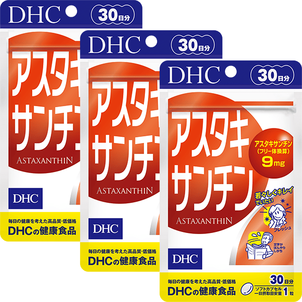 DHCの『アスタキサンチン』は、アスタキサンチンを豊富に含むヘマトコッカス藻を原料に、1日1粒目安で手軽に補えるソフトカプセルです。毎日の食事だけでは補いにくいアスタキサンチンを9mg※も配合。さらに、ともにはたらくビタミンEも配合し、いつまでも若々しくキレイでいたい方や生活習慣が気になる方、イキイキと毎日を過ごしたい方を応援します。