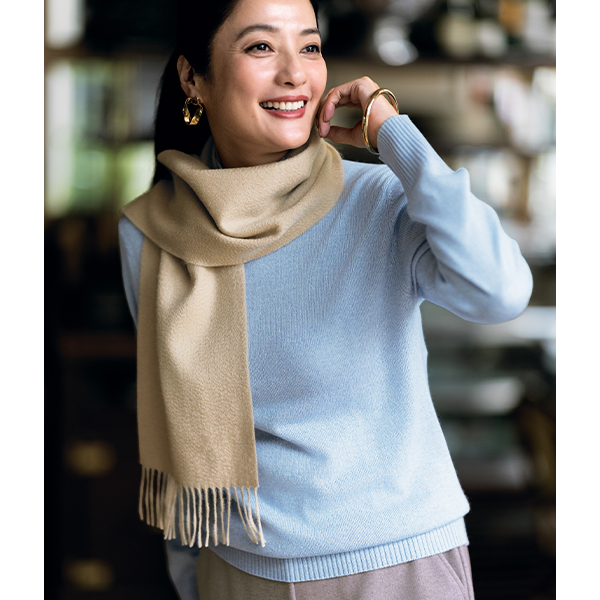 シルク65%とカシミヤ35%の贅沢なニットです。ゆとりがありすぎず、すっきりめのシルエットで、素材特有のしっとり感がある薄手のニットは着ぶくれの心配もなさそうです。少しお高めですが、納得の商品です。