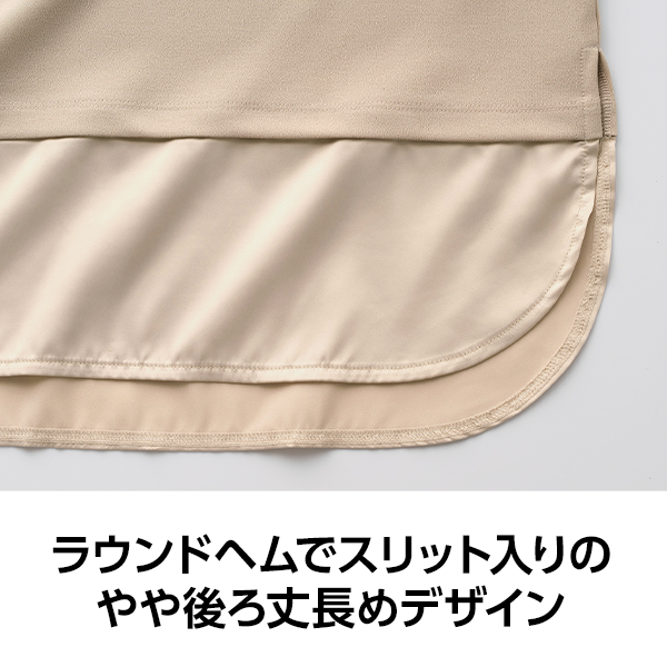 きれい見えする軽くて透け感のない素材でふわっと軽やかに着られます。身頃はゆとりがあり体型を拾わないので安心感があります。切り替え部分でヒップまで隠れるのもうれしいです。