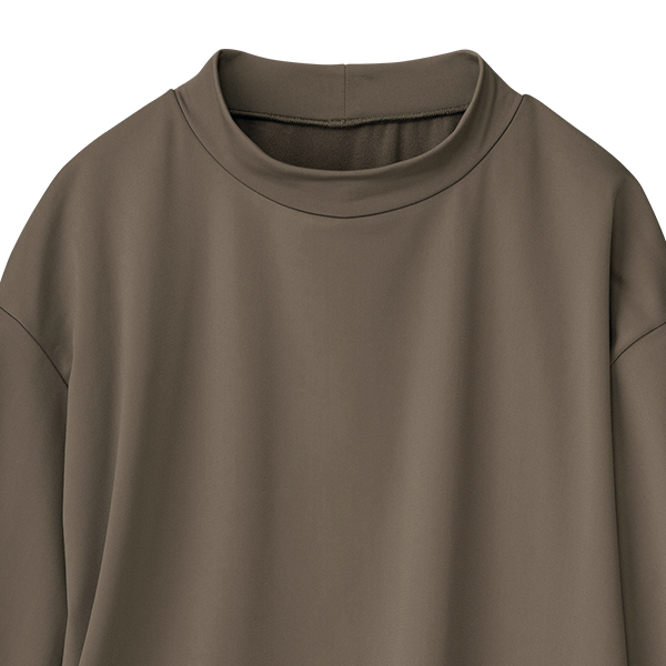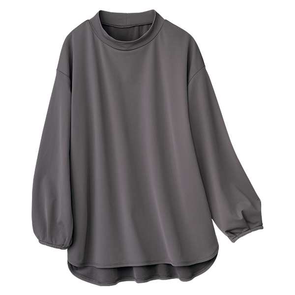 表はなめらか、裏は起毛がかった、もっちりした素材感です。Sサイズでちょうど良いです。良く伸びるのでハイネックでも着脱は無理なくでき、ストレスなく着ていられました。袖口のタックが優しい印象のカットソーです。