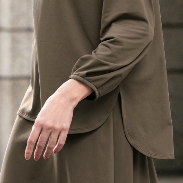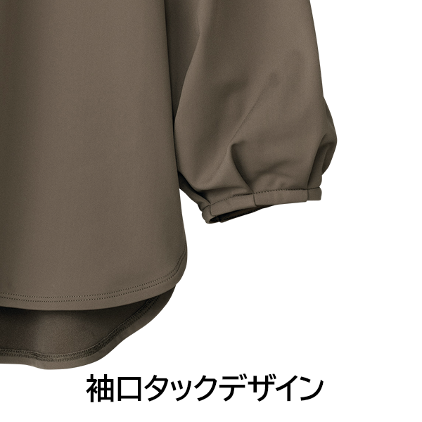 表はきれいできちんと感のあるなめらかな表面感で上品でありつつ裏は起毛がかっていてとてもあたたかいです!肌寒くなってくる頃から長い期間使えます。袖口は、タック入りでふんわりしたシルエットになります。ヒップまで隠れるので体型カバーも叶います。