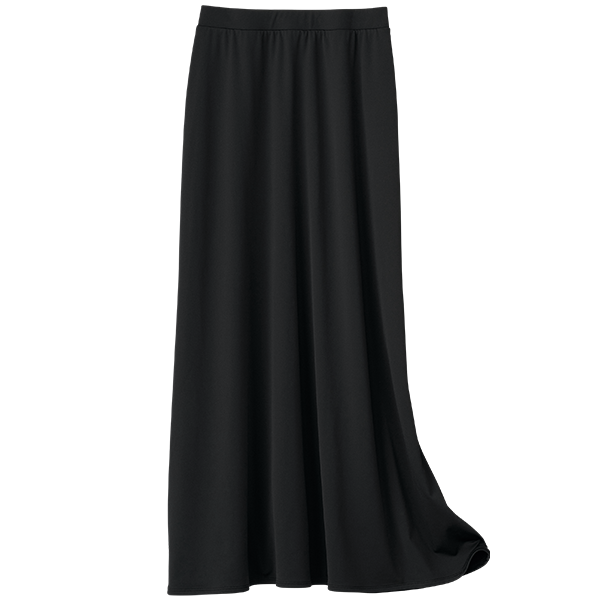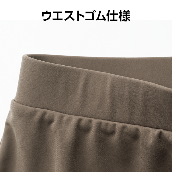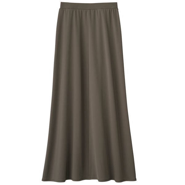 ストレッチ性に富んだジャージー素材で、セラミック配合の暖かさ、素肌に着ても心地よい肌触りです。シンプルなAラインのスカートで裾廻りも広く、ウエストはゴムで履きやすいですが、ポケットはありません。「15414:至高の起毛ジャージー・イージーパンツ」とはウエスト寸法が違いますので、サイズをご確認ください。