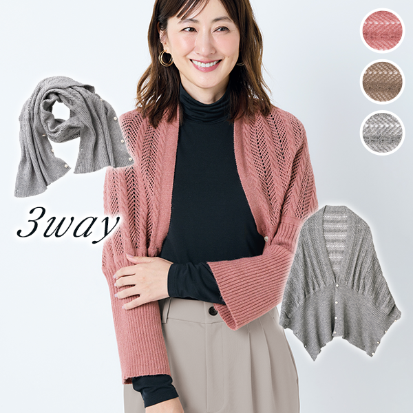 ボレロに、カーディガンに、ストールに♪1枚三役の上品な透かし編みボレロ