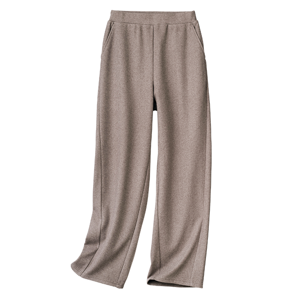 「フリース」よりもふっくらとして、肌触りが良く、DHCオリジナルの開発素材。裏地は無く、ウエスト総ゴム、横にストレッチ、ゆとりもあり、脇線が前に沿ってくるワイドシルエットなので、スッキリ目がお好みでしたら、ワンサイズ下を選んでも良さそうです。衣服内を"ちょうどよい快適な温度"にコントロールする機能性をお試しください。