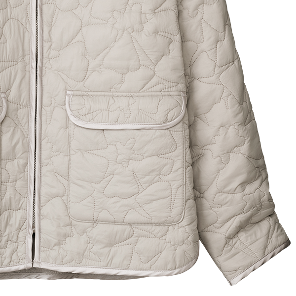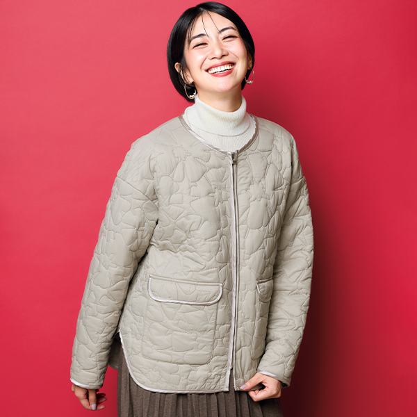 着た瞬間からあたたかい、軽い着心地のキルティングジャケット。裏フリースがふんわりやさしく、あたたかさを増します。目を惹くフラワー柄のキルトが女性らしく着こなせます。