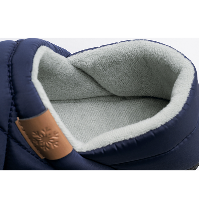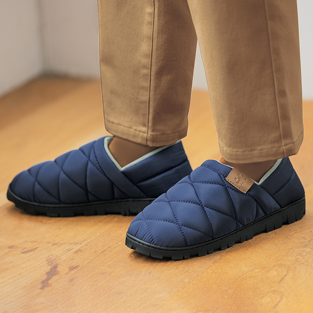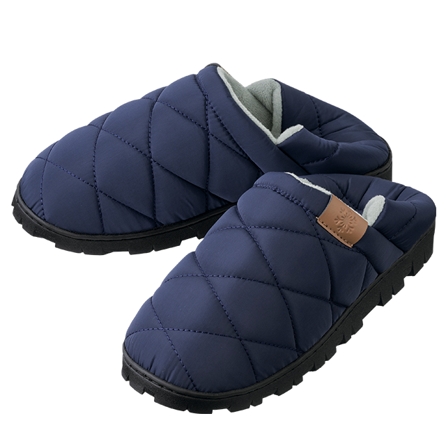 中綿のキルティング素材で内側が全面フリースなのでとても暖かいです。ゆったりしているので厚手の靴下を履いていても窮屈さがありません。すぽっと履けて脱ぎ履きが楽なリラックス感のあるラクチンシューズです。