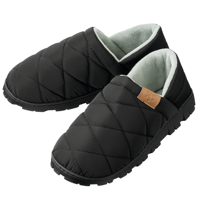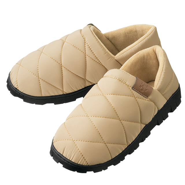 • ポリエステルを中わたキルティング加工であたたかくふかふかにした本体。ライニング・インソールはショートボアフリース地(ポリエステル)でやさしい履き心地です。