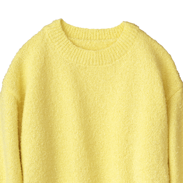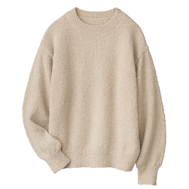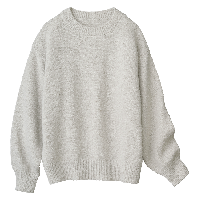 • 見た目の華やかさを持ちつつ、保温性のあるブークレー糸を使用したあったかニット