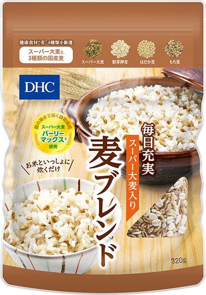 『DHC毎日充実 スーパー大麦入り麦ブレンド』は、腸の奥まで届く食物繊維が含まれるとされるスーパー大麦「バーリーマックス®」のほか、3種類の国産麦(もち麦、胚芽押麦、はだか麦)を厳選配合した麦ブレンドです。お米と一緒に炊くだけの手軽さで、いつものごはんの栄養価を上げることができます。