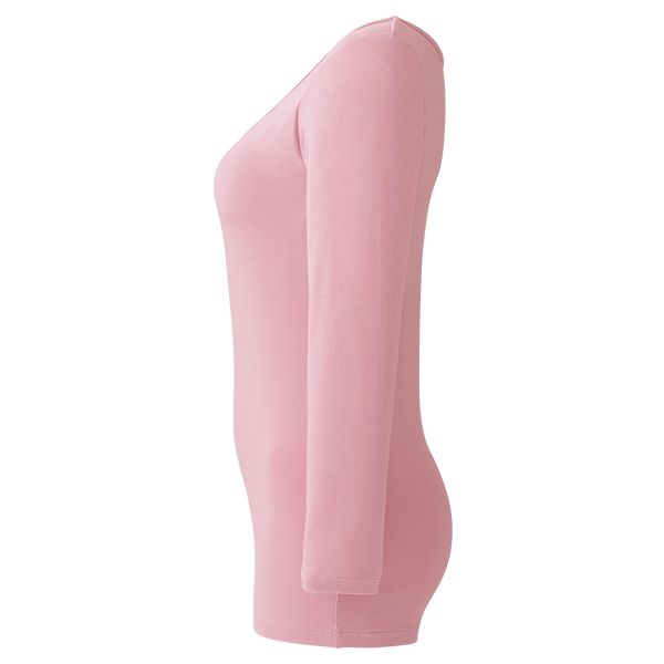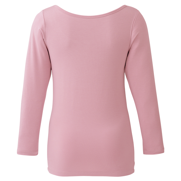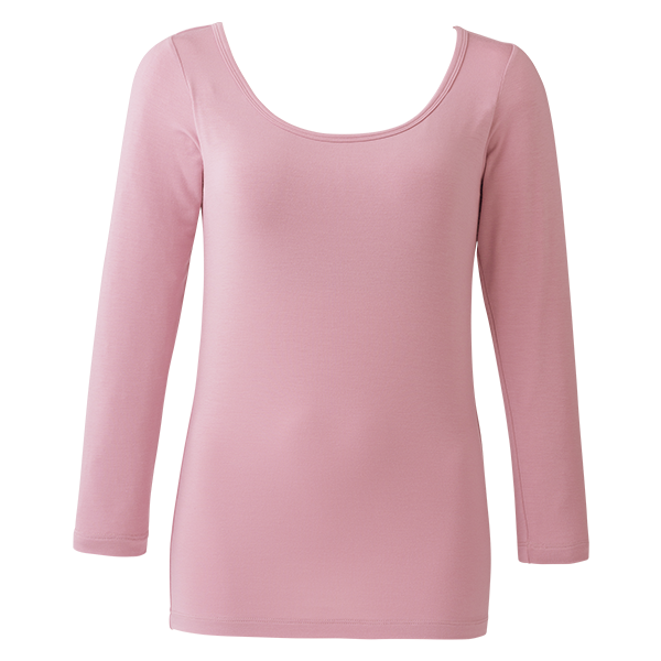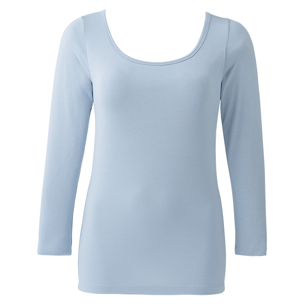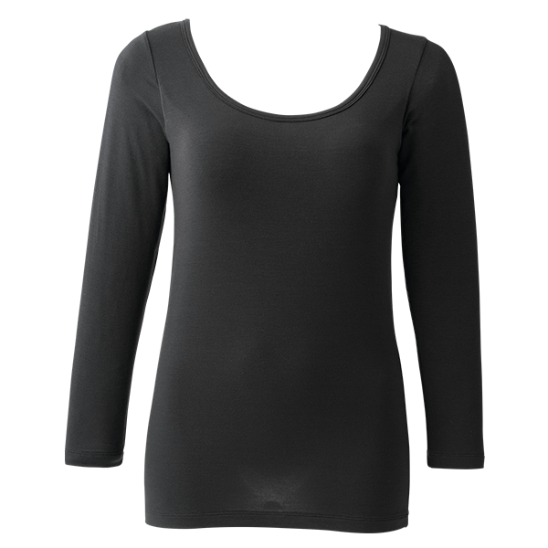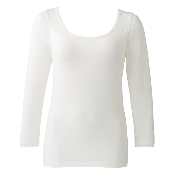 滑らかな肌触りで心地良く、ふわっと温かさを感じます。アンダーはぐるりゴムで腕の上げ下げにもズレ感がほぼなく、薄手でもたつき感もないのでインナーとして大活躍します。