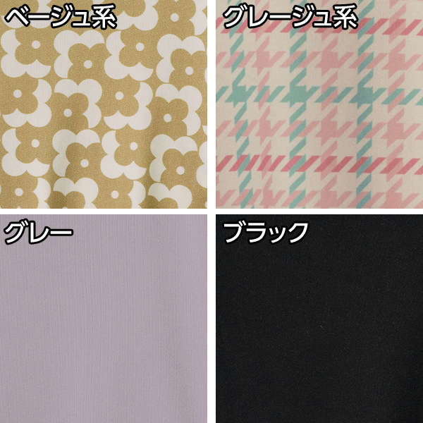• ベージュ柄トップス:フラワー柄<br>グレージュ柄トップス:チェック柄