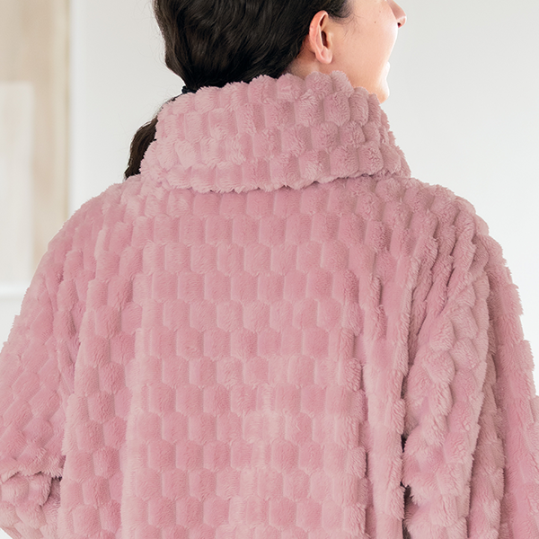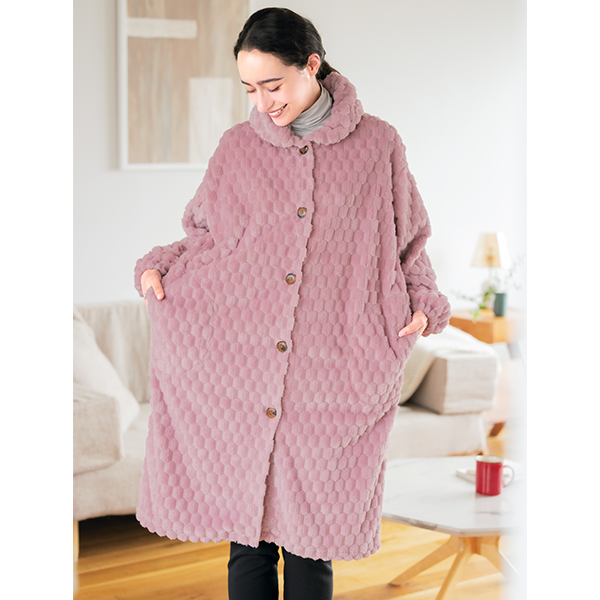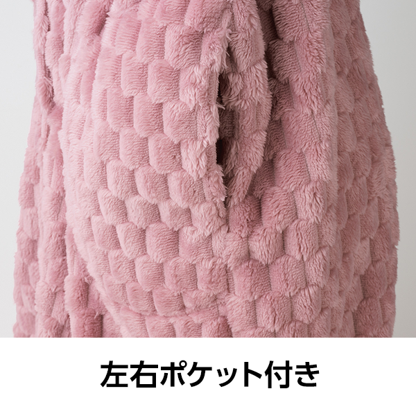 冬のお家時間はこれ一択!立体的なふかふかボアがまるで毛布を着ているようにすっぽりあったか。ゆとりたっぷりで重ね着しやすいので、朝起きた時やお風呂上がりにさっと羽織れます。袖口は風を通しにくく、家事もしやすいゴム仕様です。