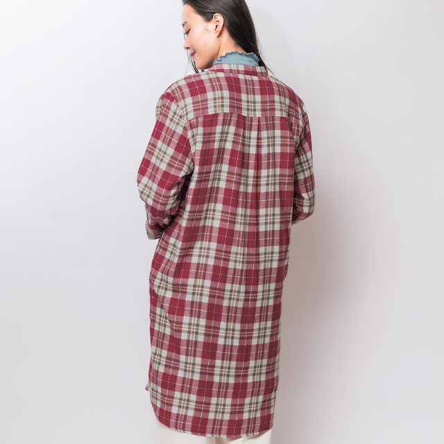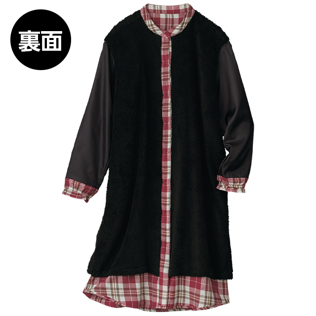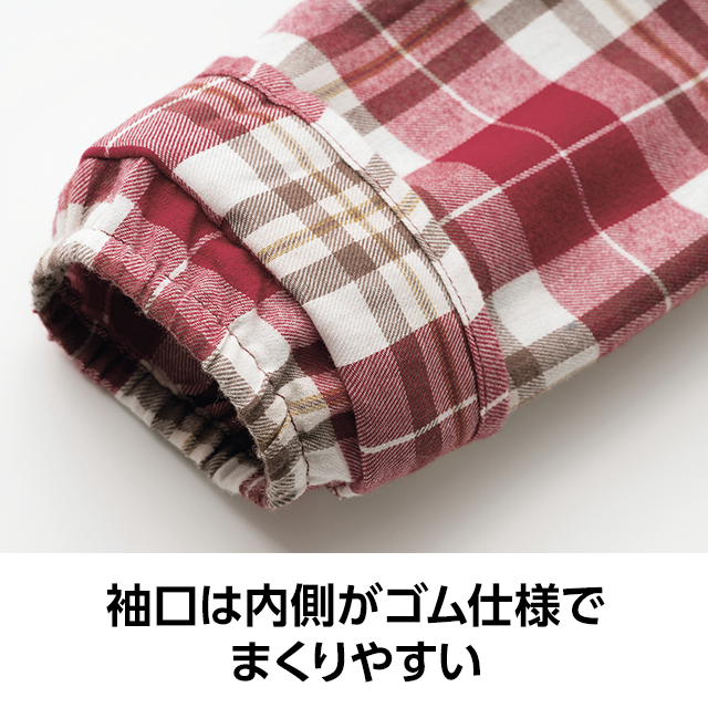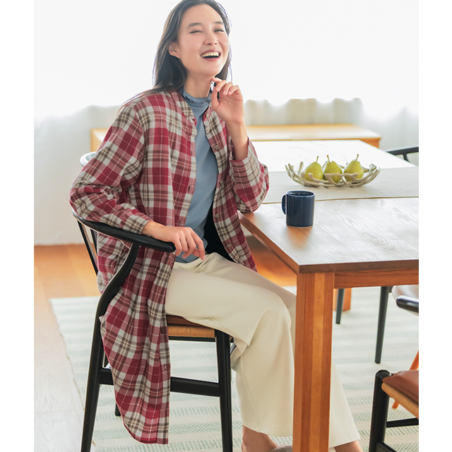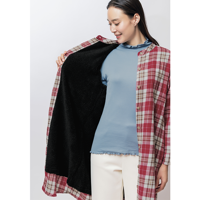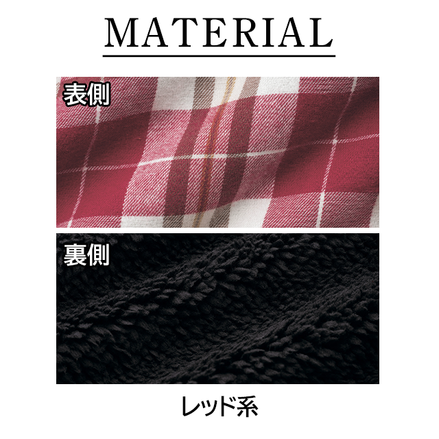 • 着用色:レッド系<br>内側ボアのシャツで家事中もぽかぽか!