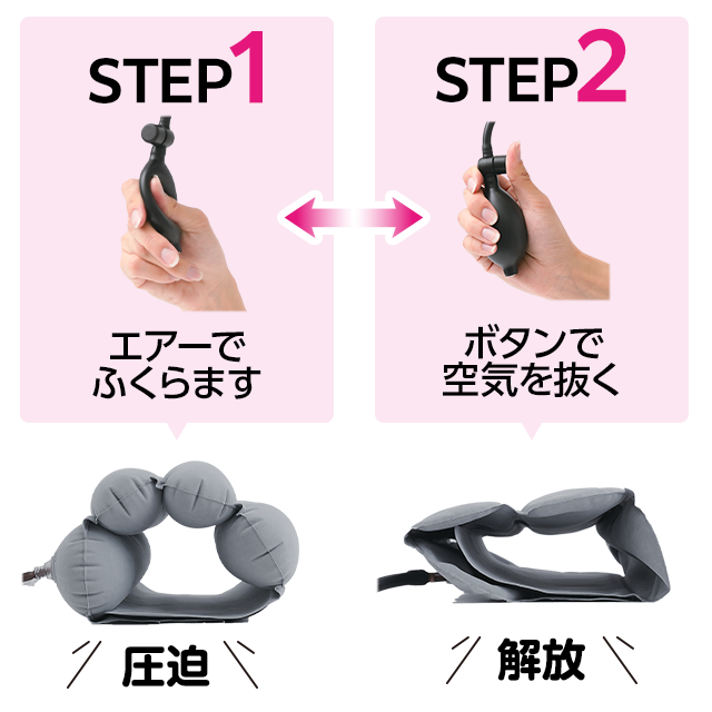 • 自分好みにふくらませて、ボタンを押すだけでエアーが抜ける、電源不要のかんたん操作