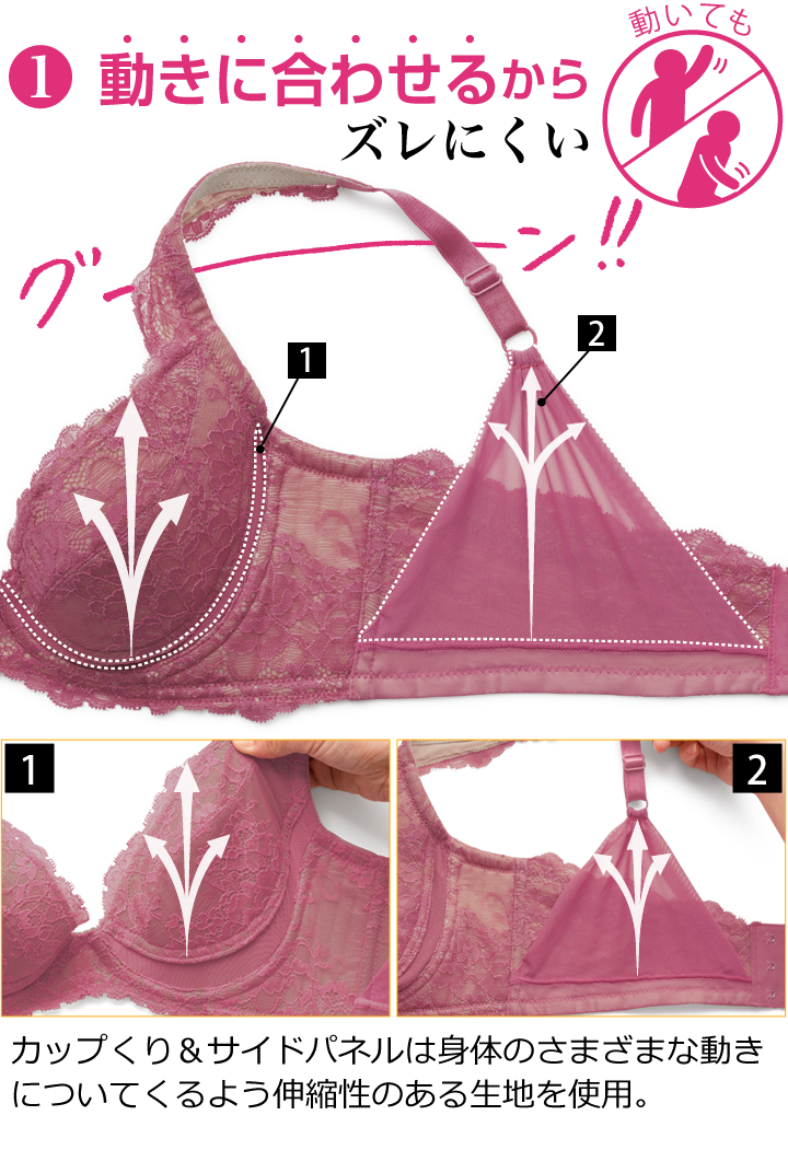 すべての女性が待ち望んでいた着け心地革命!どんなに動いてもバスト、ズレにくい!