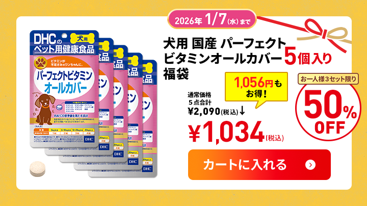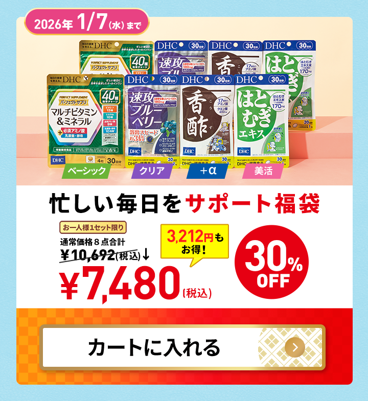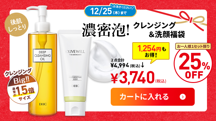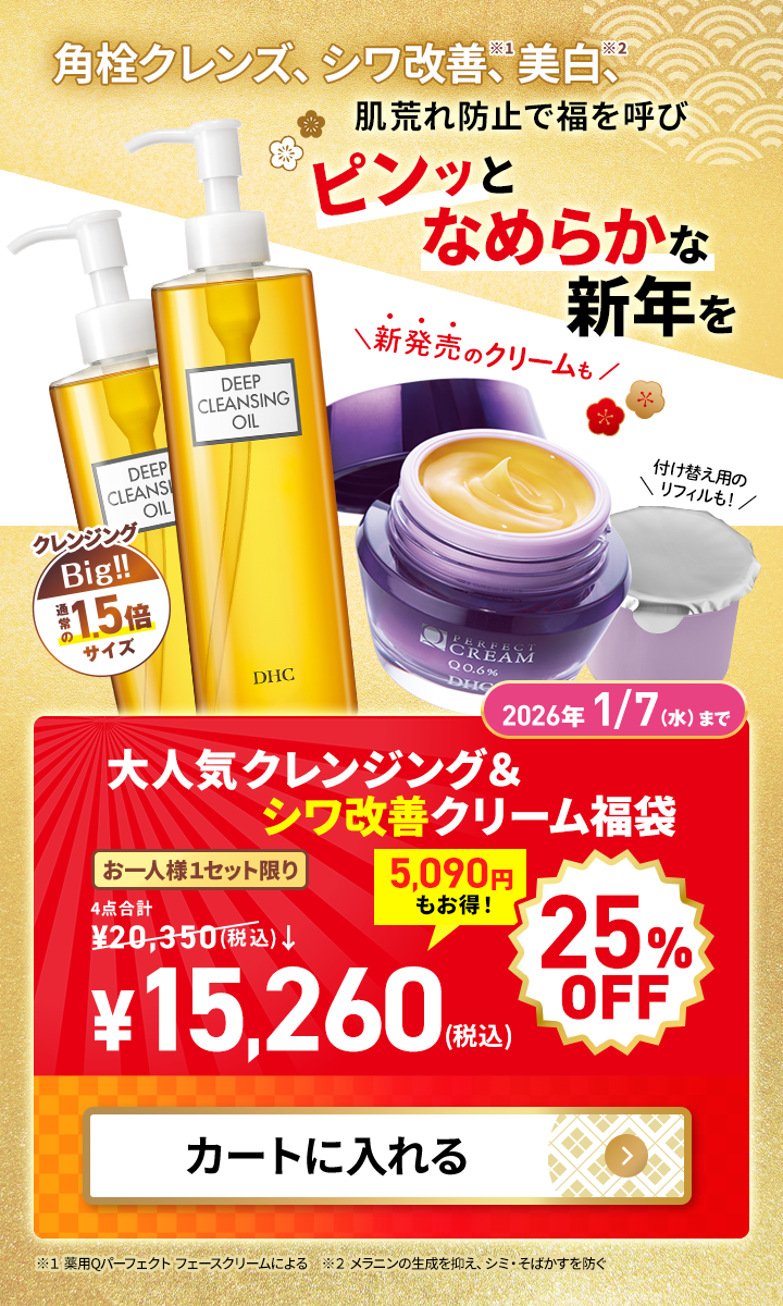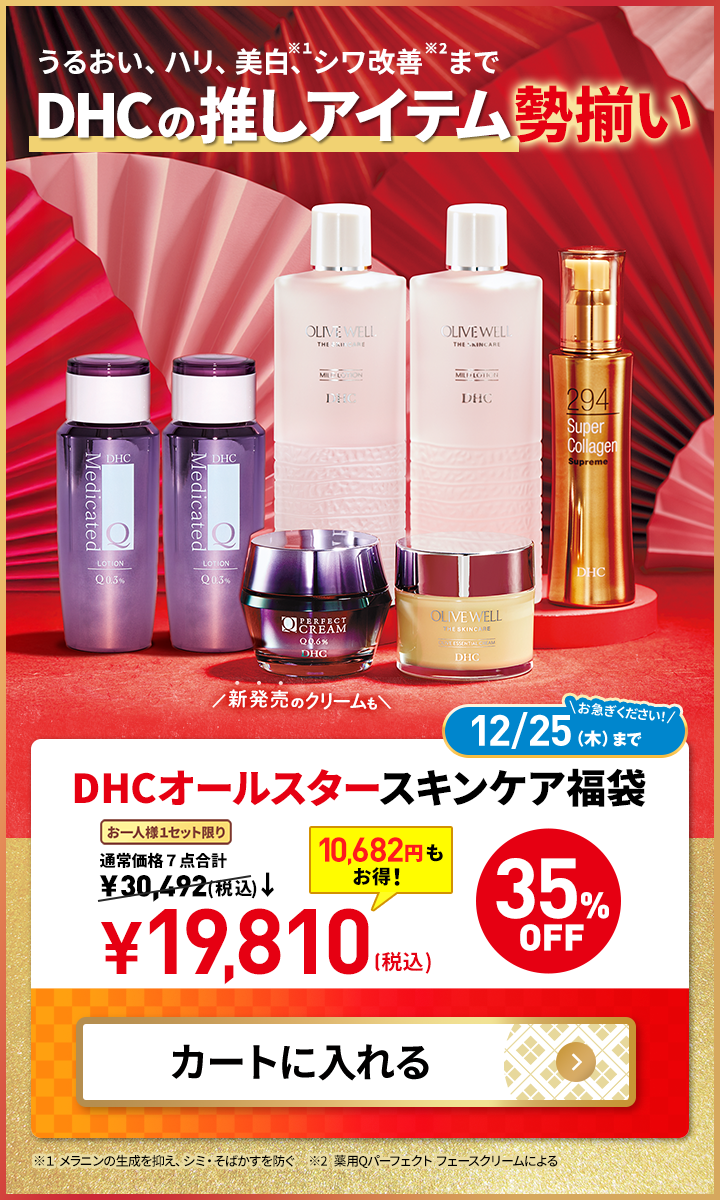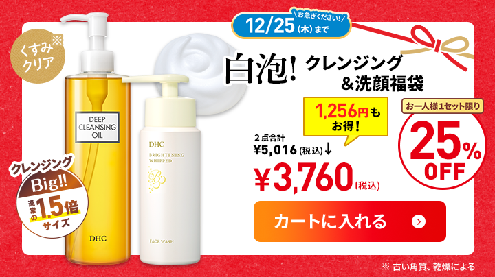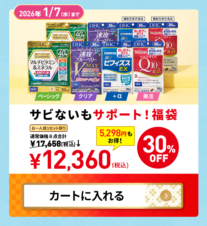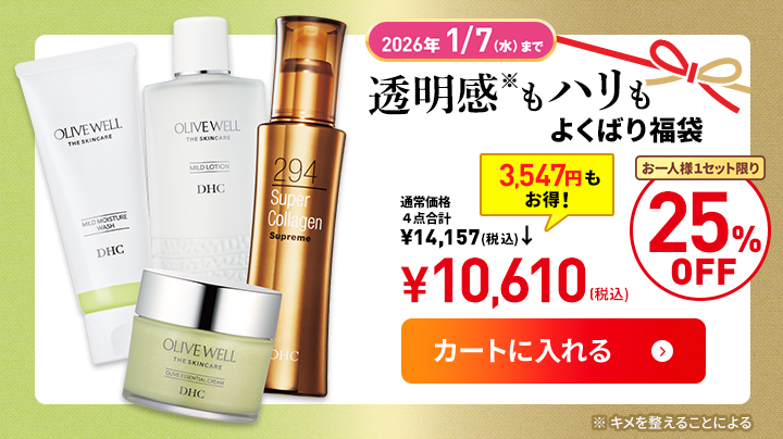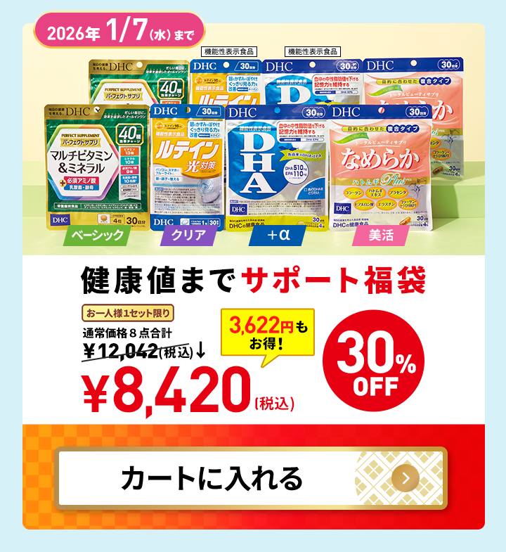 人気商品が勢ぞろい!DHCから皆様へ日頃のご愛顧に感謝してとっておきのお得な福袋をご用意しました!最大50%OFF!なくなり次第終了。