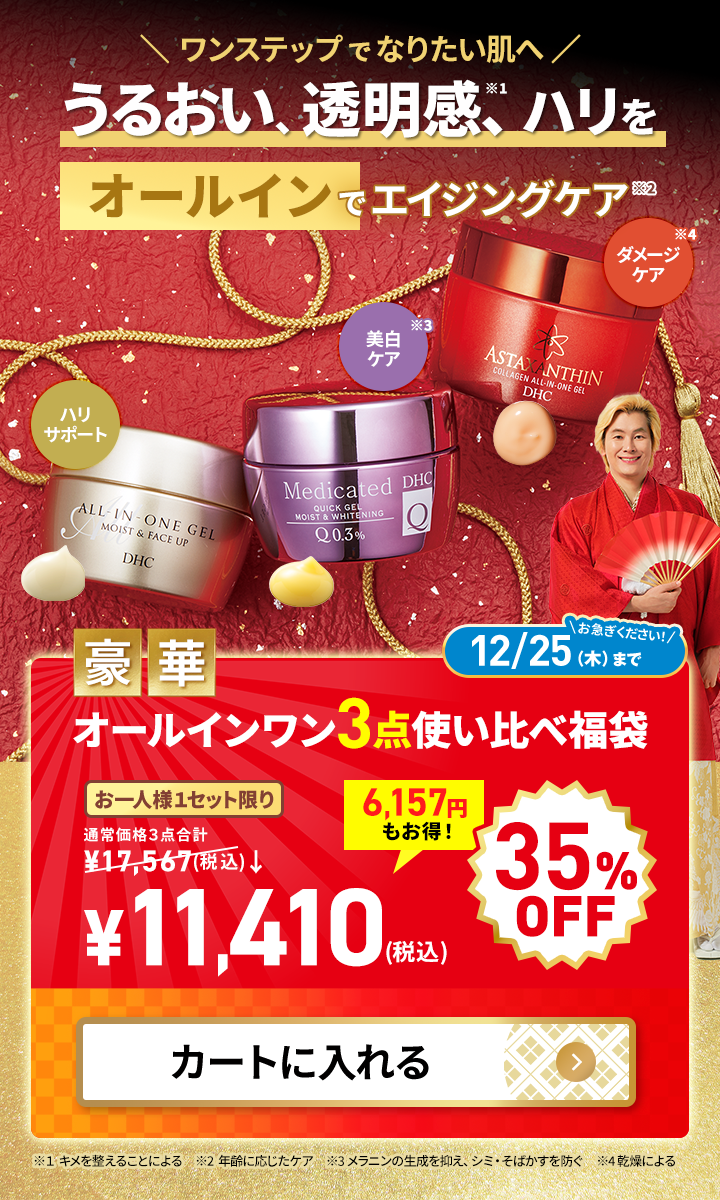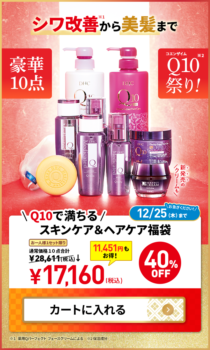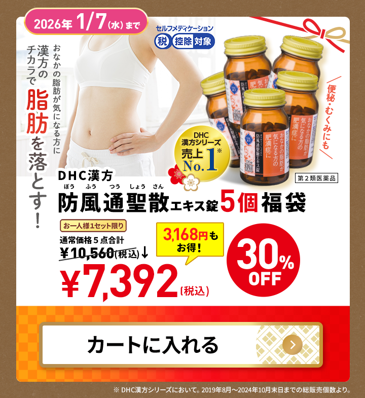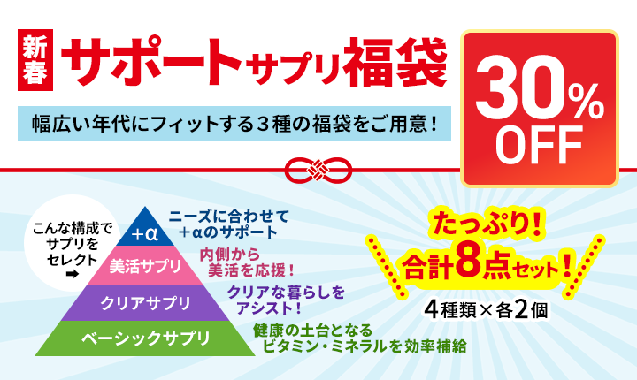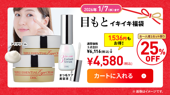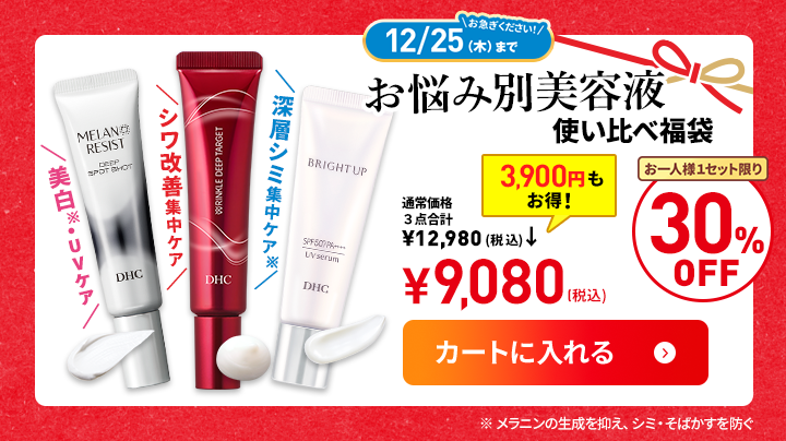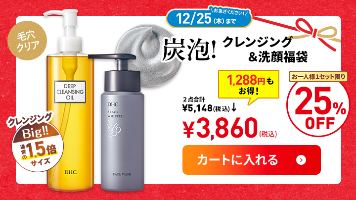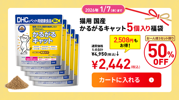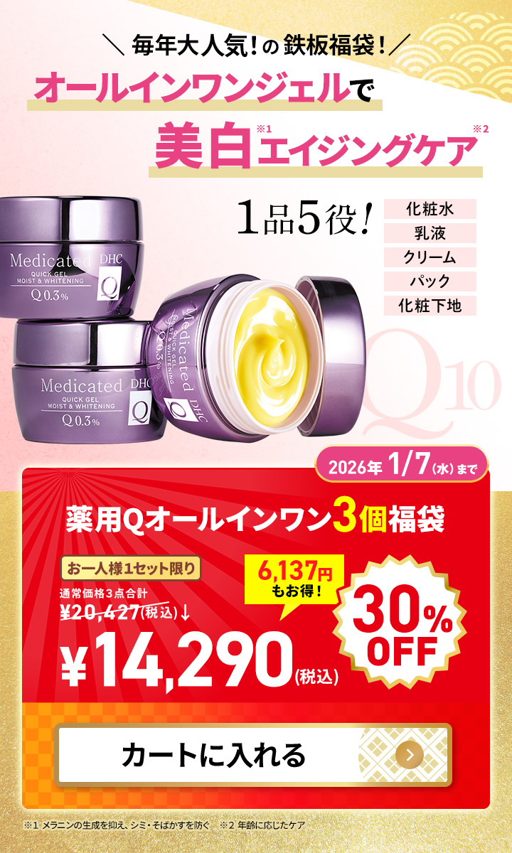 人気商品が勢ぞろい!DHCから皆様へ日頃のご愛顧に感謝してとっておきのお得な福袋をご用意しました!最大50%OFF!なくなり次第終了。